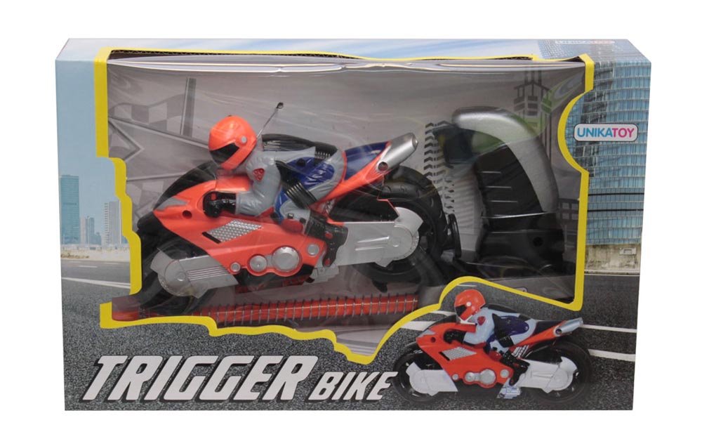 Zagotovi si svoj motor trigger na vzmeti, ki ima sprožilec in je velik 16 centimetrov. Za prave motoristične navdušence! Na voljo v modri barvi.