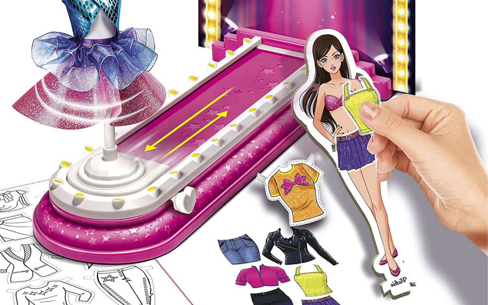 V setu deklice najdejo modno pisto, kartonske podobice punčk, lutko, tkanine, različne orise oblačil ter raznovrstne druge dodatke, torej vse kar potrebujejo za kreacijo popolnega modnega kosa!